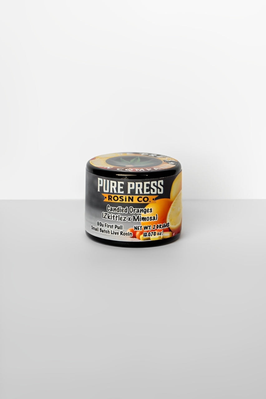 Candied Oranges is a meticulously crafted cold-cure rosin that embodies the essence of high-quality solventless extraction. This strain offers a vibrant citrus-forward profile, with dominant notes of freshly peeled oranges, candied zest, and a subtle creamy undertone. Engineered for an elevated sensory experience, Candied Oranges delivers a well-balanced effect profile, providing a euphoric cerebral uplift complemented by a mild body relaxation—ideal for both functional daytime use and unwinding in the evening.